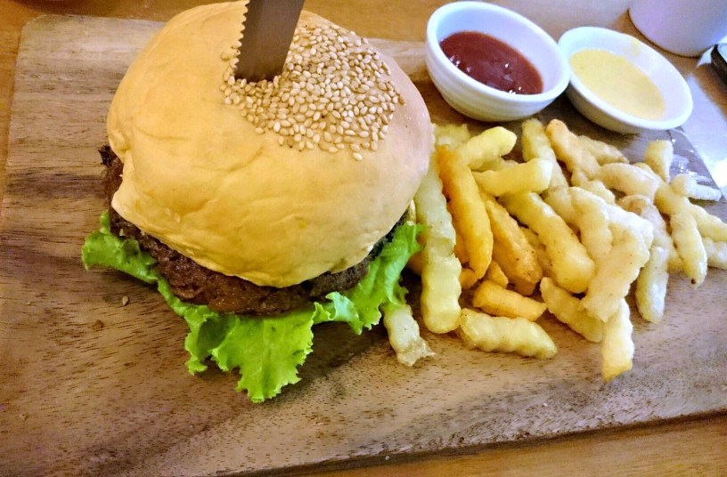 I don’t know if it is just me, but I find the knife poked at the middle of the burger quite distracting. But otherwise, the burger was good. Their burgers are lightly infused with shitake mushrooms and garlic seasonings that produce the distinct flavor in the meat.
